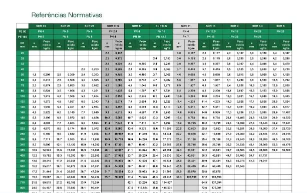 Disponíveis nos diâmetros Ø20 a Ø1600 mm, atende as mais diversas normas. Conforme normas NBR 15561 e NTS 048 ISO 4427, NBR 8417, NTS 194, EN 12201.